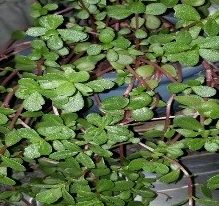 Purslane – tends to appear after the soil warms in late spring or early summer. It’s common in rich, fertile soil. The succulent stems and leaves stay close to the ground. Young leaves and stems are edible. The tiny flowers at the stem tips quickly give way to seedpods. Purslane seeds can persist in soil for years, making them a perennial. It is heat and drought tolerant. It’s known as the Dolly Parton flower because it blooms from 9am to 5pm. The colors of the stems are tinted red. They’re also round. The leaves are paddle-shaped, flat and alternately arranged.